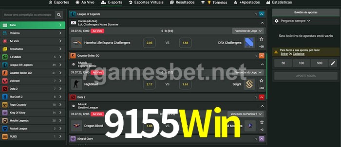 O 9155Win oferece uma grande seleção de opções de apostas em e-sports com probabilidades competitivas